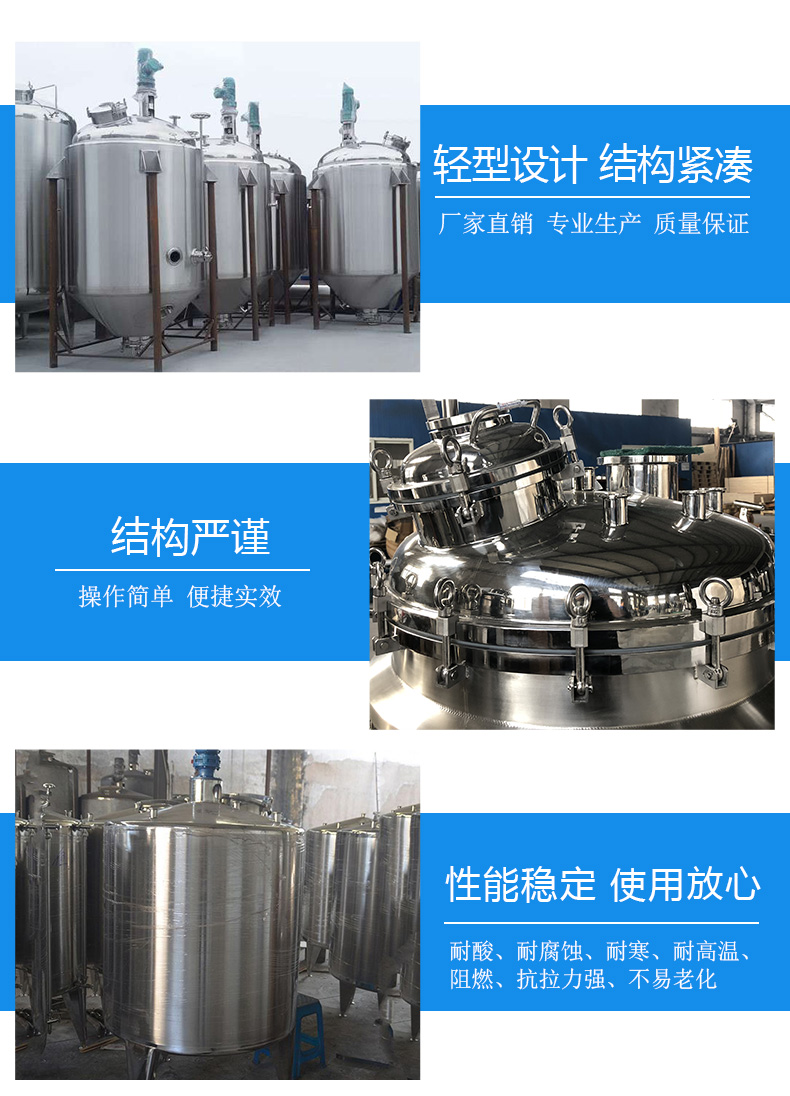 非标定制各种功能搅拌罐:旋叶式机械搅拌罐、顶入式机械搅拌罐、螺旋式机械搅拌罐、磁力搅拌罐、耐腐蚀磁力搅拌罐、上磁力搅拌罐等