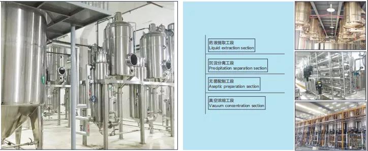浓缩设备尽量选用双效真空浓缩器;水沉、醇沉、絮凝沉淀选用沉淀罐;过滤设备尽量选用网袋式过滤器、离心机、板框过滤器等;干燥设备尽量选用真空干燥、微波真空干燥和喷雾干燥等设备,以方便粉碎和制剂车间制粒;